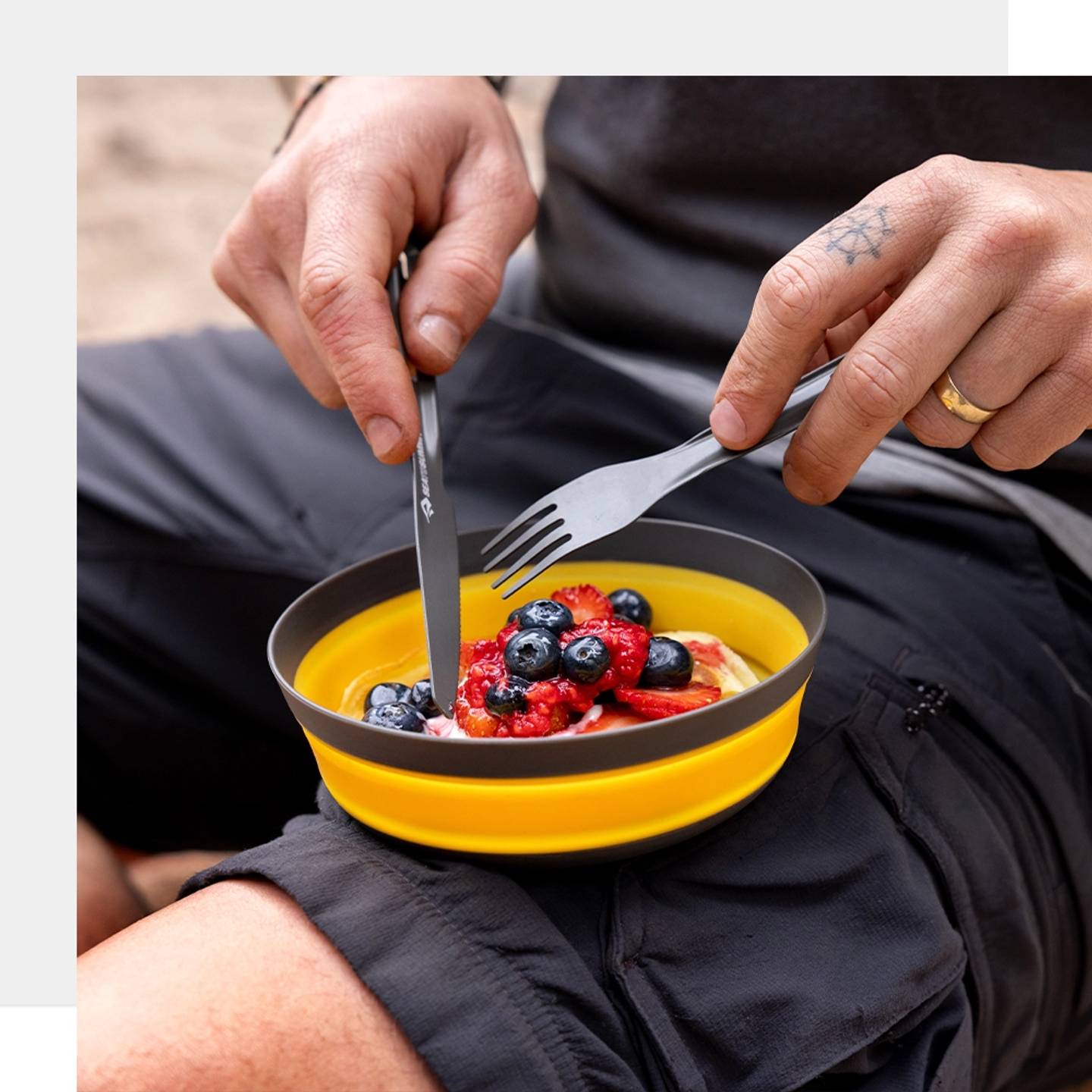 Elevate camp meals with Sea to Summit’s range of durable, lightweight, and compact camping cutlery sets and utensils. Designed to be both functional and easy to use, our range of outdoor and travel cutlery sets incorporate features such as nesting capability and precision curvature to perfectly match the shape of our bowls and plates, saving you space in your pack.